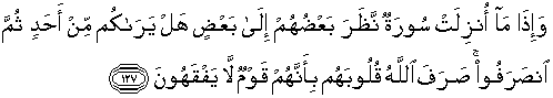 127. Dan apabila diturunkan satu surat, sebagian mereka memandang