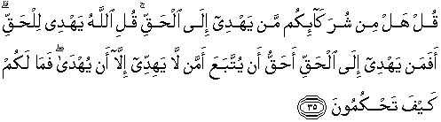 menunjuki kepada kebenaran?" Katakanlah "Allah-lah yang
