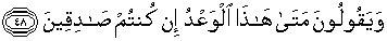 48. Mereka mengatakan: "Bilakah (datangnya) ancaman itu, jika memang kamu orang-orang yang benar?"