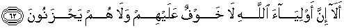 62. Ingatlah, sesungguhnya wali-wali Allah itu, tidak ada kekhawatiran terhadap mereka dan tidak (pula) mereka bersedih hati.