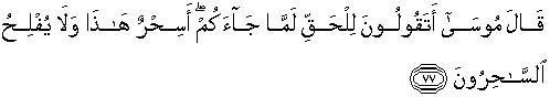 77. Musa berkata: "Apakah kamu mengatakan terhadap kebenaran waktu ia datang kepadamu, sihirkah ini?" padahal ahli-ahli sihir itu tidaklah mendapat kemenangan."