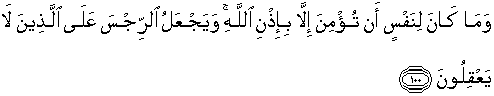 100. Dan tidak ada seorangpun akan beriman kecuali dengan izin Allah; dan Allah menimpakan kemurkaan kepada orang-orang yang tidak mempergunakan akalnya.