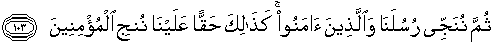 103. Kemudian Kami selamatkan rasul-rasul Kami dan orang-orang yang beriman, demikianlah menjadi kewajiban atas Kami menyelamatkan orang-orang yang beriman.