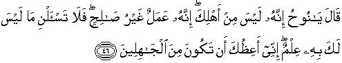 46. Allah berfirman: "Hai Nuh, sesungguhnya dia bukanlah termasuk keluargamu