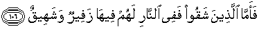 106. Adapun orang-orang yang celaka, maka (tempatnya) di dalam neraka, di dalamnya mereka mengeluarkan dan menarik nafas (dengan merintih),