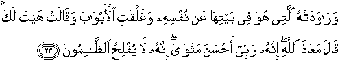 23. Dan wanita (Zulaikha) yang Yusuf tinggal di rumahnya menggoda