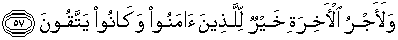 57. Dan sesungguhnya pahala di akhirat itu lebih baik, bagi orang-orang yang beriman dan selalu bertakwa.