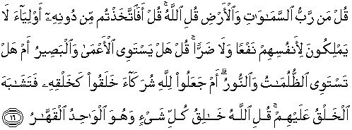 16. Katakanlah: "Siapakah Tuhan langit dan bumi?" Jawabnya: