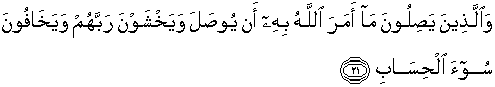 21. dan orang-orang yang menghubungkan apa-apa yang Allah perintahkan supaya dihubungkan