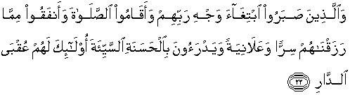 22. Dan orang-orang yang sabar karena mencari keridhaan Tuhannya,