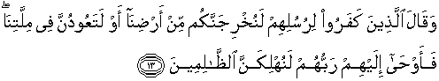 13. Orang-orang kafir berkata kepada Rasul-rasul mereka: "Kami