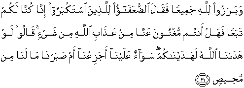 orang-orang yang sombong: "Sesungguhnya kami dahulu adalah pengikut-pengikutmu, maka dapatkah kamu menghindarkan daripada kami azab