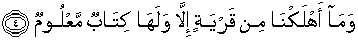 4. Dan Kami tiada membinasakan sesuatu negeripun, melainkan ada baginya ketentuan masa yang telah ditetapkan.