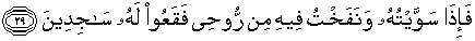 29. Maka apabila Aku telah menyempurnakan kejadiannya, dan telah meniup kan kedalamnya ruh (ciptaan)-Ku, maka tunduklah kamu kepadanya dengan bersujud