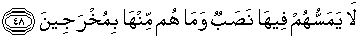48. Mereka tidak merasa lelah di dalamnya dan mereka sekali-kali tidak akan dikeluarkan daripadanya.