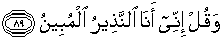 89. Dan katakanlah: "Sesungguhnya aku adalah pemberi peringatan yang menjelaskan."