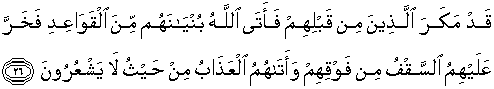 fondasinya, lalu atap (rumah itu) jatuh menimpa mereka dari