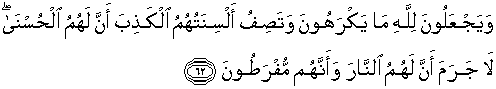 62. Dan mereka menetapkan bagi Allah apa yang mereka sendiri