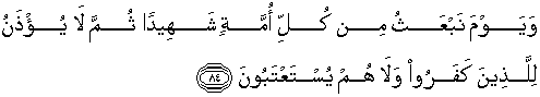 84. Dan (ingatlah) akan hari (ketika) Kami bangkitkan dari