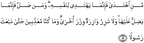 15. Barangsiapa yang berbuat sesuai dengan hidayah (Allah), maka sesungguhnya