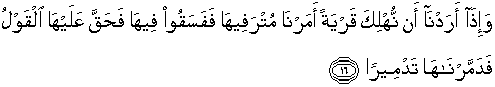 16. Dan jika Kami hendak membinasakan suatu negeri, maka Kami perintahkan