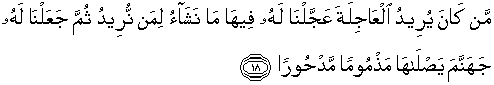 18. Barangsiapa menghendaki kehidupan sekarang (duniawi), maka Kami segerakan
