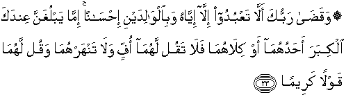 23. Dan Tuhanmu telah memerintahkan supaya kamu jangan menyembah selain Dia