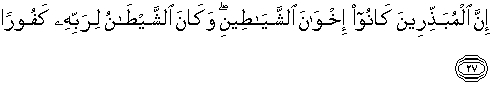 27. Sesungguhnya pemboros-pemboros itu adalah saudara-saudara syaitan dan syaitan itu adalah sangat ingkar kepada Tuhannya.