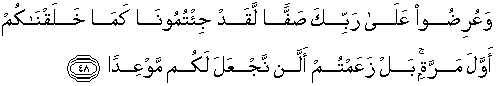 48. Dan mereka akan dibawa ke hadapan Tuhanmu dengan berbaris. Sesungguhnya
