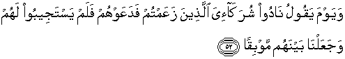 52. Dan (ingatlah) akan hari (yang ketika itu) Dia berfirman: "Serulah