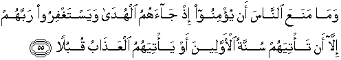 55. Dam tidak ada sesuatupun yang menghalangi manusia dari beriman, ketika