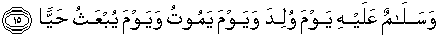 15. Kesejahteraan atas dirinya pada hari ia dilahirkan dan pada hari ia meninggal dan pada hari ia dibangkitkan hidup kembali.