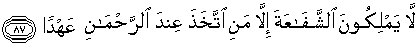 87. Mereka tidak berhak mendapat syafa'at kecuali orang yang telah mengadakan perjanjian di sisi Tuhan Yang Maha Pemurah