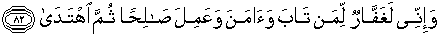 82. Dan sesungguhnya Aku Maha Pengampun bagi orang yang bertaubat, beriman, beramal saleh, kemudian tetap di jalan yang benar.