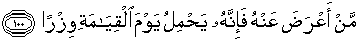 100. Barangsiapa berpaling dari pada Al qur'an maka sesungguhnya ia akan memikul dosa yang besar di hari kiamat,