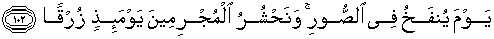 102. (yaitu) di hari (yang di waktu itu) ditiup sangkakala[942]