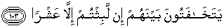 103. mereka berbisik-bisik di antara mereka: "Kamu tidak berdiam (di dunia) melainkan hanyalah sepuluh (hari)"