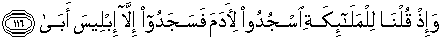 116. Dan (ingatlah) ketika Kami berkata kepada malaikat: "Sujudlah kamu kepada Adam", maka mereka sujud kecuali iblis. Ia membangkang.
