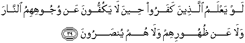 39. Andaikata orang-orang kafir itu mengetahui, waktu (di mana)