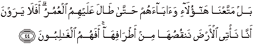 44. Sebenarnya Kami telah memberi mereka dan bapak-bapak mereka