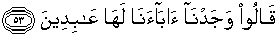 53. Mereka menjawab: "Kami mendapati bapak-bapak kami menyembahnya."