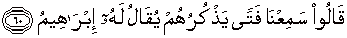 60. Mereka berkata: "Kami dengar ada seorang pemuda yang mencela berhala-berhala ini yang bernama Ibrahim ."