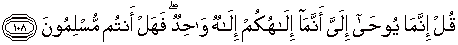 108. Katakanlah: "Sesungguhnya yang diwahyukan kepadaku adalah: "Bahwasanya Tuhanmu adalah Tuhan Yang Esa. maka hendaklah kamu berserah diri (kepada-Nya)."