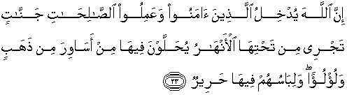 23. Sesungguhnya Allah memasukkan orang-orang beriman dan