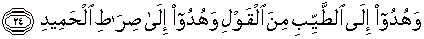 24. Dan mereka diberi petunjuk kepada ucapan-ucapan yang baik dan ditunjuki (pula) kepada jalan (Allah) yang terpuji.