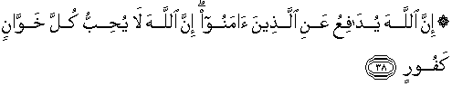 38. Sesungguhnya Allah membela orang-orang yang telah beriman. Sesungguhnya Allah tidak menyukai tiap-tiap orang yang berkhianat lagi mengingkari nikmat.