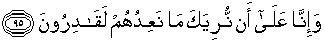 95. Dan sesungguhnya Kami benar-benar kuasa untuk memperlihatkan kepadamu apa yang Kami ancamkan kepada mereka.