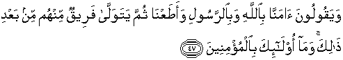 47. Dan mereka berkata: "Kami telah beriman kepada Allah dan rasul,