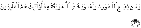 52. Dan barang siapa yang taat kepada Allah dan rasul-Nya dan takut