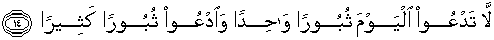 14. (Akan dikatakan kepada mereka): "Jangan kamu sekalian mengharapkan satu kebinasaan, melainkan harapkanlah kebinasaan yang banyak"